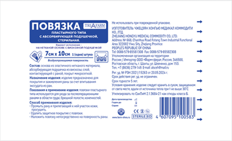 Повязка пластырного типа стерильная 7см х 10см № 50
