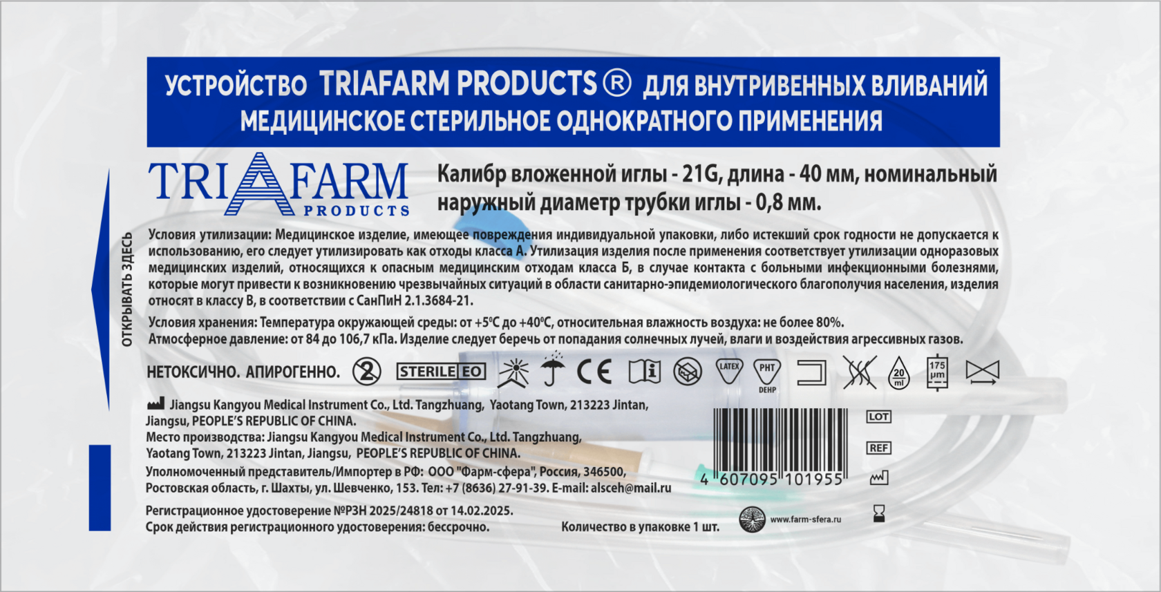 Устройство для переливания инфузионных растворов стерильное, однократного применения производство TRIAFARM PRODUCTS®